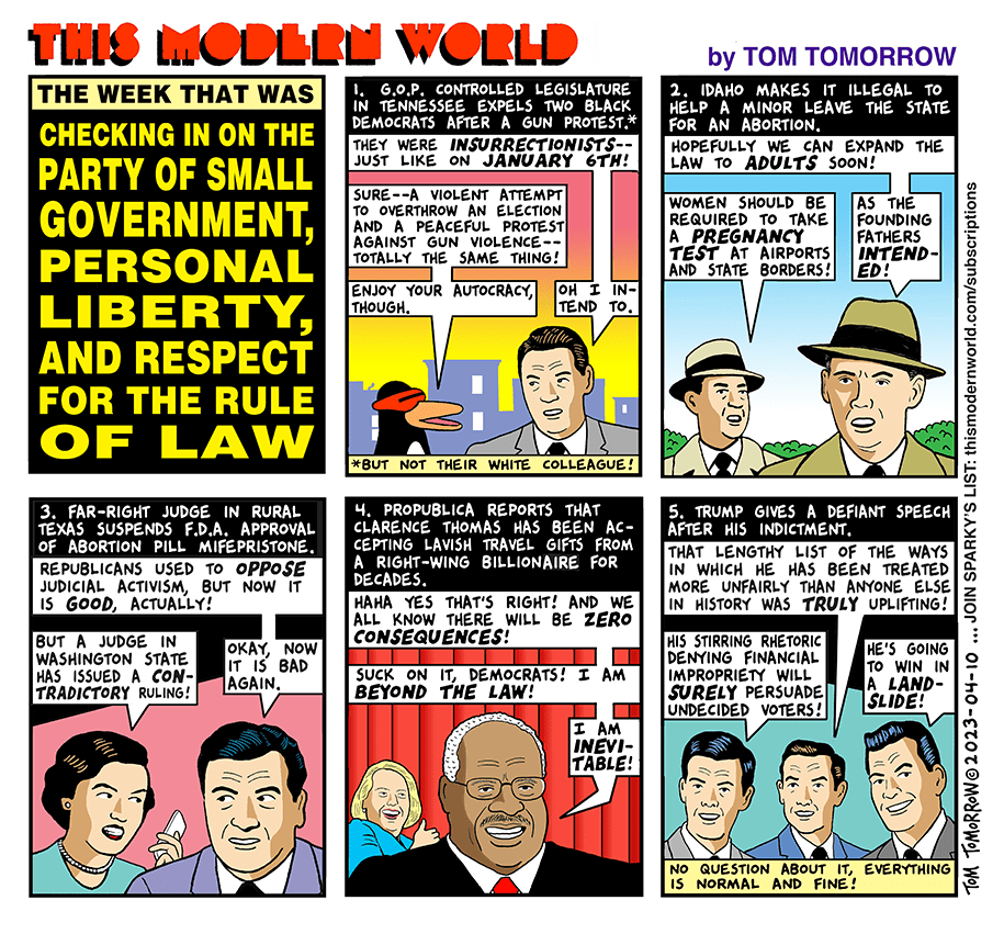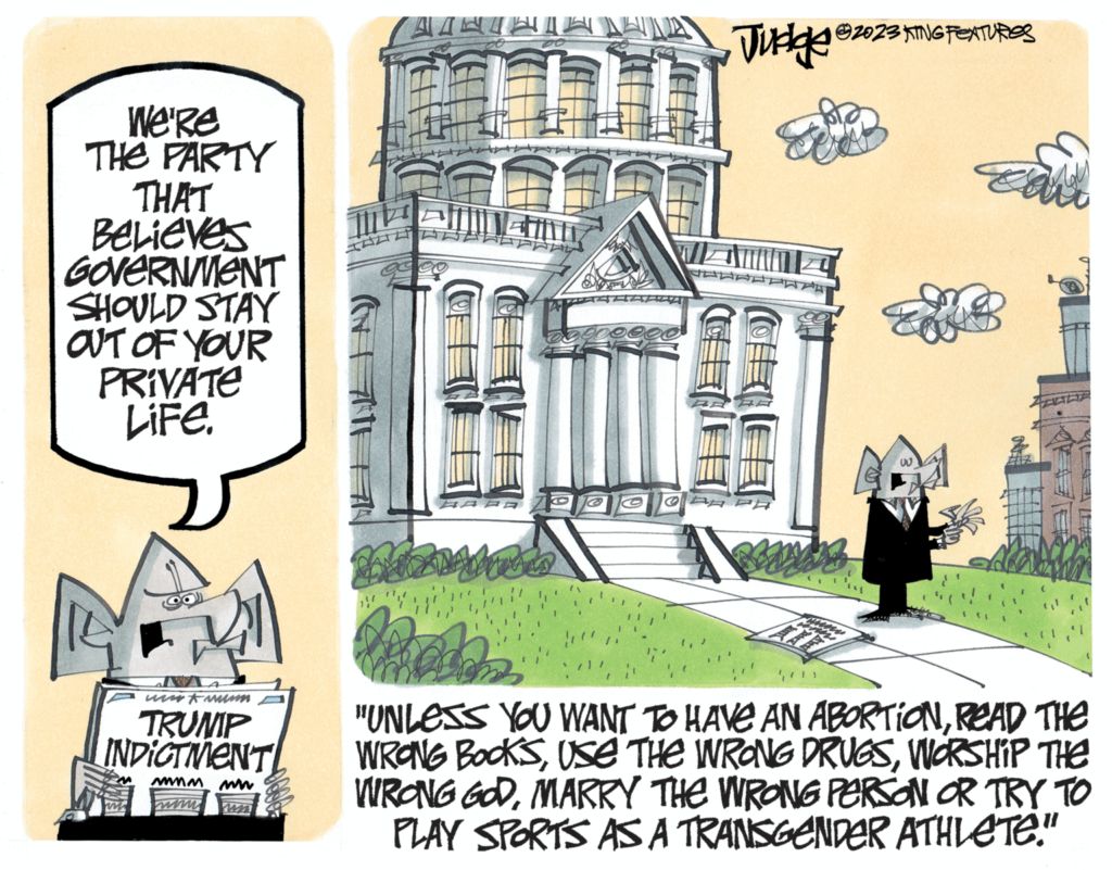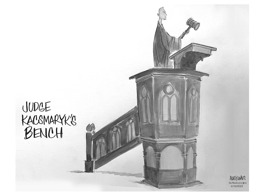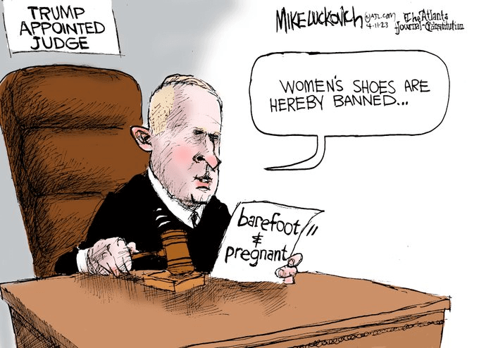 Telnaes makes the point that Judge Kacsmaryk’s outrageous decision about mifepristone came from the pulpit and not the bench, and, as Ruth Marcus makes clear, he didn’t even attempt to hide the fact that he was basing his finding on religious beliefs rather than judicial reasoning or scientific study: