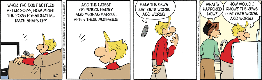 Arlo decries the horserace coverage of upcoming elections, and he’s right, but, even focusing on the immediate campaigns, it seems Donald Trump has once again captured the attention, and the free coverage, of major media. As Joe Heller suggests, the story now is not about how the each of these Republican candidates plan to attack Biden but how Donald Trump attacks each of them.