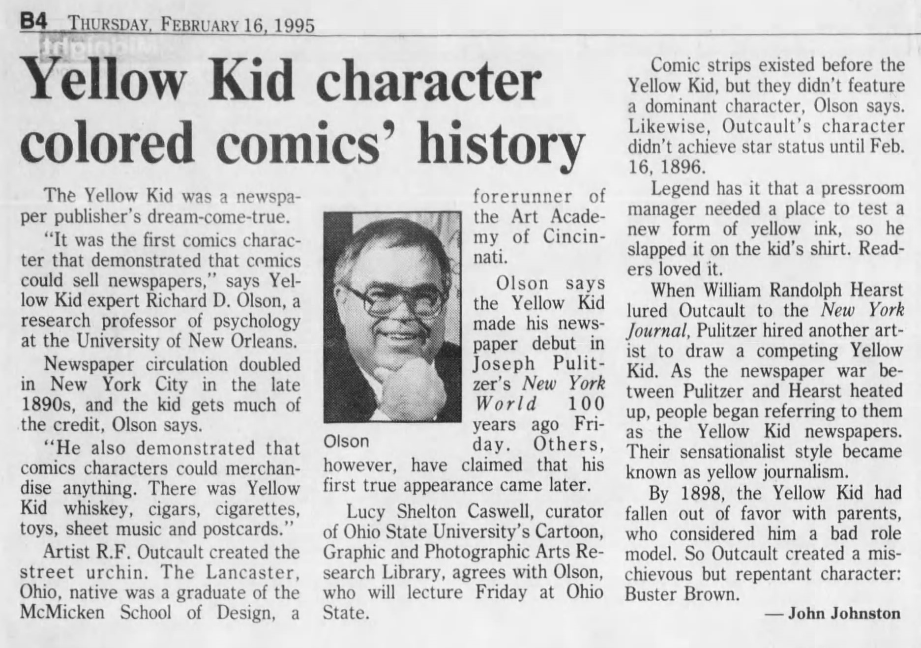 Skip to commentsComics historian and R. F. Outcault/Yellow Kid authority Richard D. Olson has passed away.