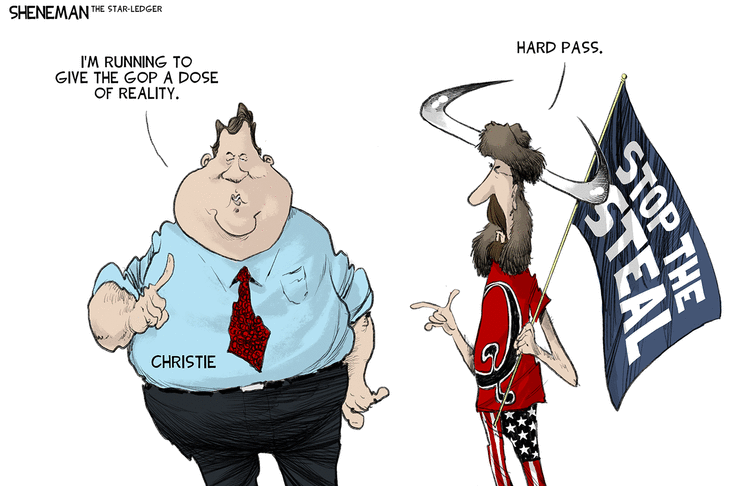 As Drew Sheneman suggests, Chris Christie is big; it’s the voters who got small.