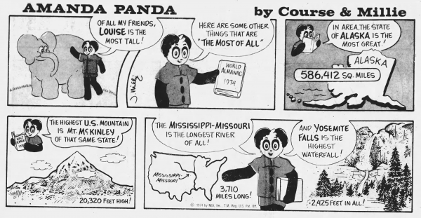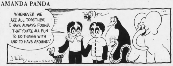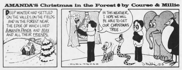 From late 1971 to early 1975 Jack was the artist for Marcia Course’s Amanda Panda comic, a strip created for the youngest of newspaper readers. In 1973 the comic was Newspaper Enterprise Association’s Christmas strip.