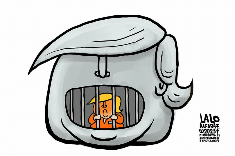 Which in turn reminds me of how much I like this Lalo Alcaraz (AMS) cartoon, because Trump has indeed condemned himself through a failure of knowing when, and perhaps how, to shut up.