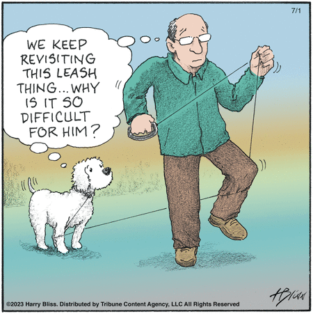 Dogs I understand, and I got a laugh out of today’s Bliss (Tribune) because nobody who knows anything about dogs recommends retractable leashes.