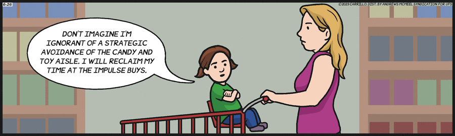 As he learned what he’d been missing, we stopped going down certain aisles, though, as noted in the cartoon, it didn’t eliminate the opportunity for debates at the checkstand.