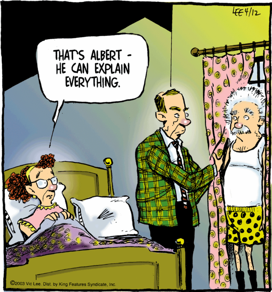 It’s not like I’ve never laughed at the overall set-up, mind you. And to be honest, I probably don’t know a whole lot more about Albert Einstein than I do about Brad Pitt.