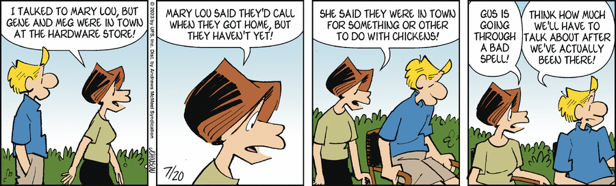 As Napoleon or Thomas Paine or somebody said, it is but one step from the sublime to the ridiculous, and, having praised the sublime writing in two strips, I got a laugh out of two ridiculous panels that landed in my browser on the same day.