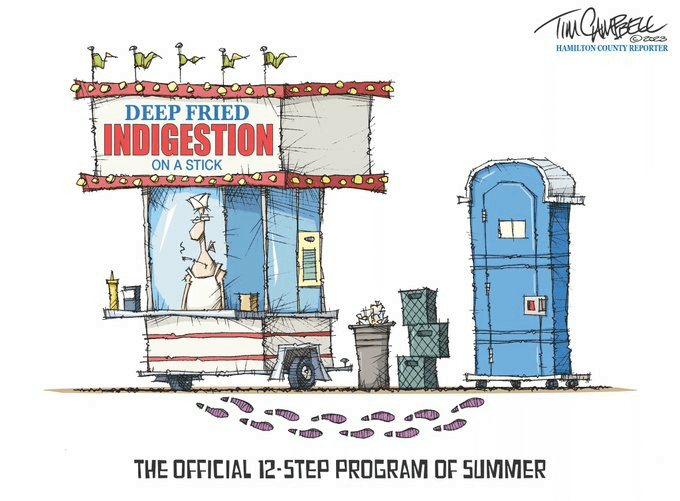 In my days as an educational services provider I sat a booth at a few county fairs, and I’ll echo Campbell’s take on the food, which is nearly all deep fried, though the Farmington Fair in Maine included some excellent lobster rolls.