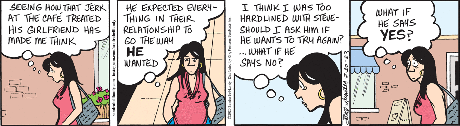 While over at Between Friends (KFS), Maeve has just been through an extended arc (begins here) in which she talked to her ex about her latest failed relationship and then, by happenstance, got to witness a dysfunctional relationship that hit way too close to home.