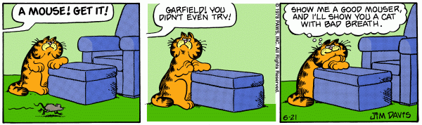 While that strip was fading, however, “Garfield” was softening a bit, which gave it greater appeal with the young crowd. It was a matter of happenstance, Davis says, as was a kind of physical settling down that also helped draw kids to the strip.