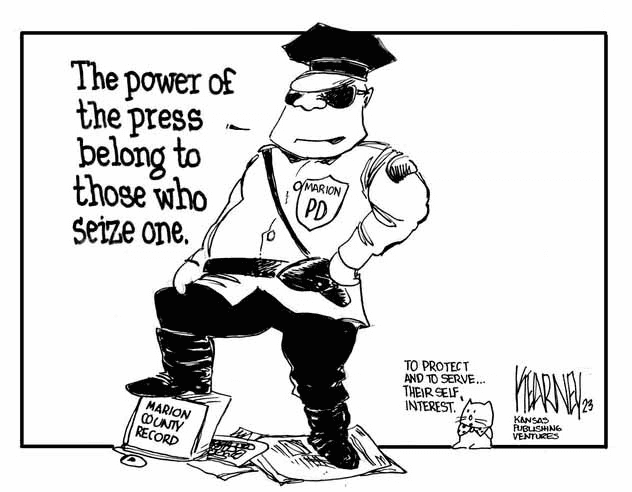 Still, might makes right, and Greg Kearney repurposes an old journalistic saying, that freedom of the press belongs to those who own one, but applies it to the bully boys who shut down the Marion County Record.