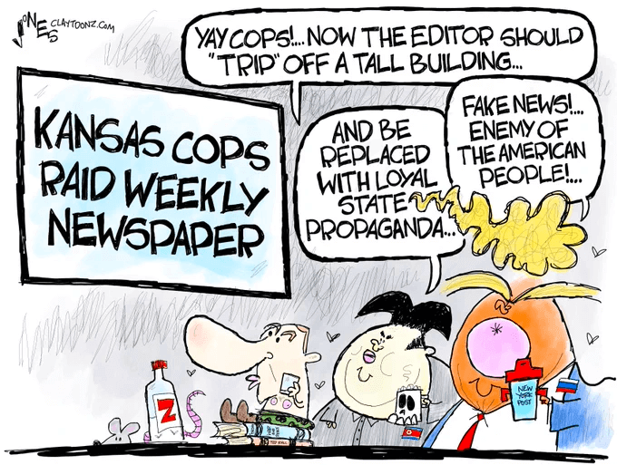 Which brings up another element of the attack on the press, not one of police storming into newsrooms but, rather, of well-heeled plutocrats launching endless, ruinous lawsuits against small papers that, as one editor said, then have to choose between paying their staff or paying their attorneys.