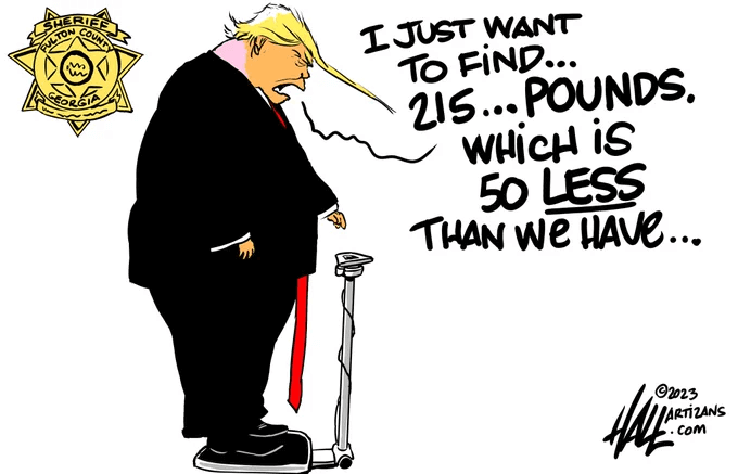 Ed Hall is hardly the only person getting a laugh out of Trump’s self-reported dimensions of 6’3″ and 215 pounds, as recorded in his Georgia booking document.