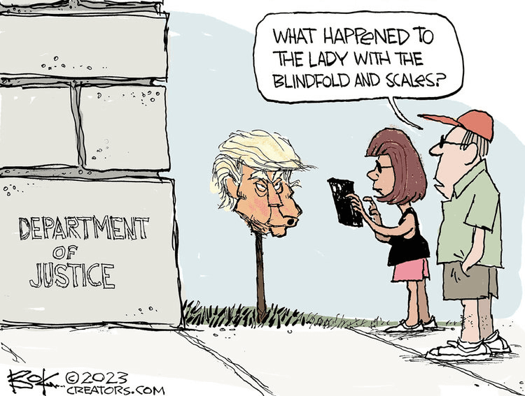 I would venture to guess that more people will see one of these two cartoons in their local paper, declaring the indictments to be fake and our system of justice corrupt, than will see any discussions of the matter in the New Yorker.