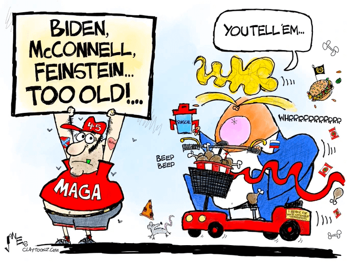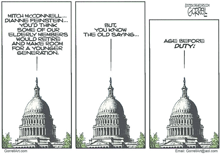 Cartoonists on the left side of the aisle have long noted the advancing ages of both Diane Feinstein and Mitch McConnell, admittedly with more mirth over McConnell’s slippage than hers, but, still, with a sort of bipartisan sense that people should know when to step aside.