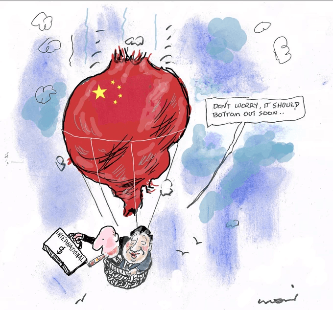 While Australian cartoonist Alan Moir points out that China has a lot of internal economic issues to work out before they will be able to lead anyone else to glory.