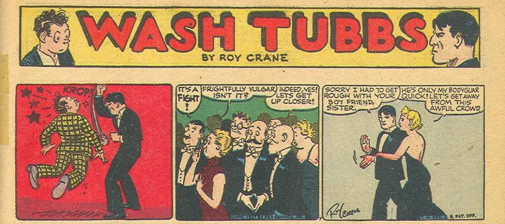The Gumps introduced soap opera to the comics pages. If not George Storm’s Phil Hardy at least give Roy Crane credit for popularizing the adventure strip. Then there was Noel Sickles and Scorchy Smith where “straight” cartooning brought a new realization to adventure comics art. Bud Fisher copyrighted his Mutt and Jeff bringing new power to cartoonists. Li’l Abner brought politics to the comics pages long before the mentioned Pogo.