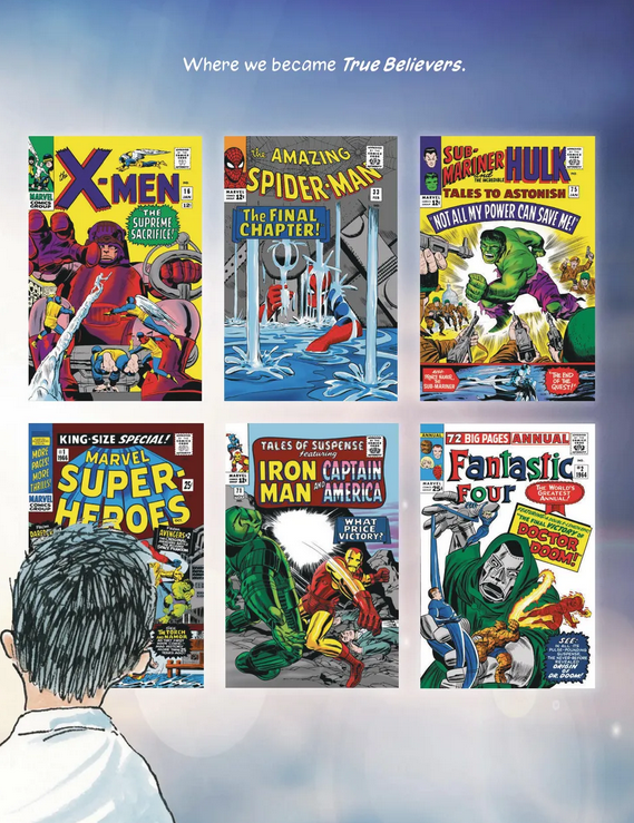The Super Hero’s Journey is a fantastical dream-memory of my childhood infatuation with comic books, and a tale of the spiritual inner journey of reconnecting to the “super being” in us all. The book is a love letter celebrating the artistry and wonder of the original Marvel Universe as created by Lee, Kirby, and Ditko. It’s a mashup between my art and the original panels from those classic 1960 Marvel Comics.”