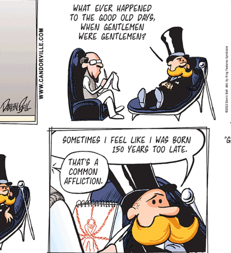 Darrin Bell‘s use of the phrase “born 150 years too late” in Candorville naturally took me back to another comic and its subtitle “Born Twenty Years Too Soon” from J. R. Williams’ Out Our Way panel.