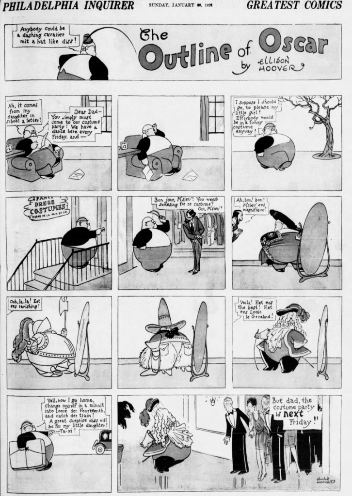 So…what? These ancient strips, while of historical interest, will earn nobody nothin’…not the originators and owners, not anybody who looks at this stuff and says, “Ooh, free money.” If nobody has reprinted them by now, then nobody cares, and if they have already then who wants to buy a knockoff of an authorized version? And certainly, the I.P. aspect is worthless too because a public domain character can’t be copyrighted or trademarked exclusively. It’s everybody’s. That’s why Disney, who recently issued DVDs featuring their soon-to-be p.d. cartoons, need not worry. “Mickey Mouse” will be their trademark forever, as long as they use it regularly, and public-domain doesn’t erase that, nor does it prevent them from continuing to reissue their own, now p.d. property. Do you want a bogus knockoff “Plane Crazy” or “Steamboat Willie” toy or tee-shirt or DVD, or the authentic ones Disney made last year? If you’re satisfied with counterfeits from China of current stuff, I guess underpriced bootlegs of 1929 works will work for you. For me, if not for everyone, owning an original anything from 1927 is the only fun of having one. Otherwise, I’d suggest you be content with the scans of comic books and strips you can already have for $0.00, unless you want someone who will charge you large sums to collect them and reverse the process by changing them back into paper.