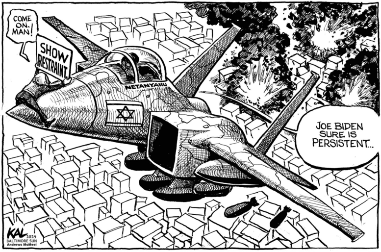 That message is equally unclear on this side of the ocean, and it’s hard to square Biden’s apparent attempts to restrain Israel with the continued supply of weaponry. However it shakes out for the people there, the lack of public clarity is a problem for Biden’s election prospects here.