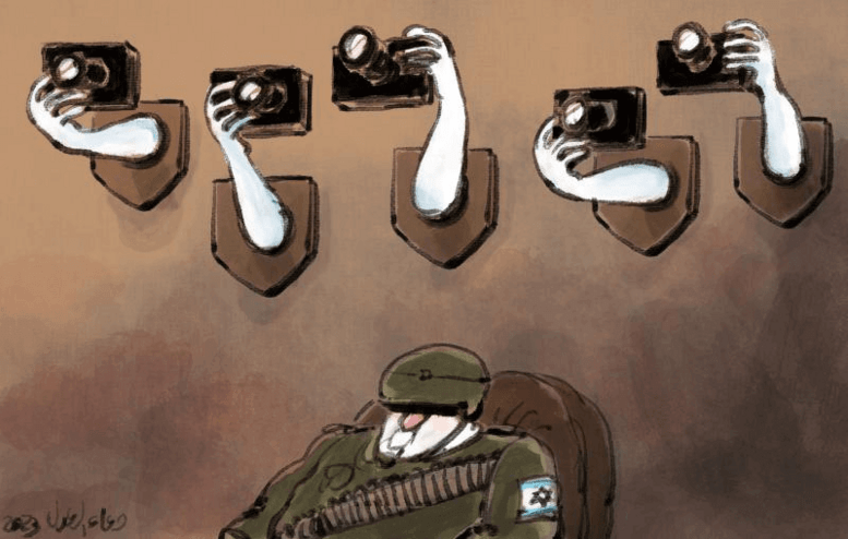Then again, “how are we to know what’s going on in Gaza?” Egyptian cartoonist Doaa Eladl (Cartoon Movement) asks, with the number of journalists killed by Israeli forces at the moment being 79.