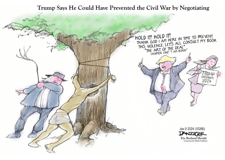 Cartoonists got a late Christmas present in the form of a nonsensical boast from Donald Trump that he could have negotiated a solution to the problems that brought about the Civil War.