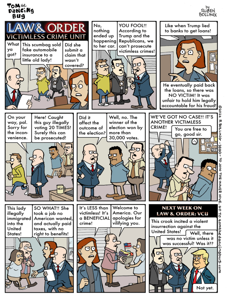 Tom the Dancing Bug offers a bit of commentary on the Trump defense that lying in contract negotiations ought not to have legal consequences as long as you pay back the loan which you got at an interest rate based on your lies.