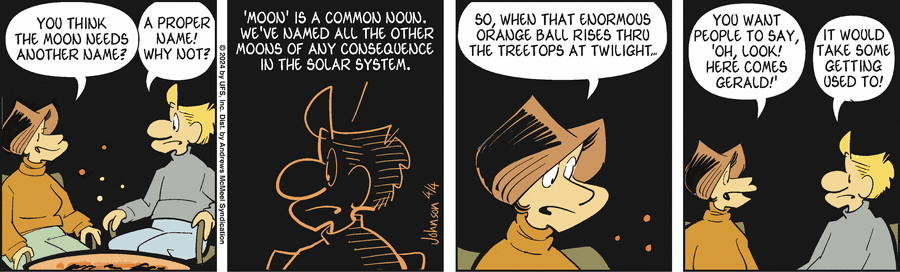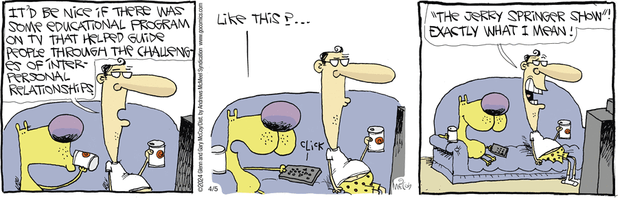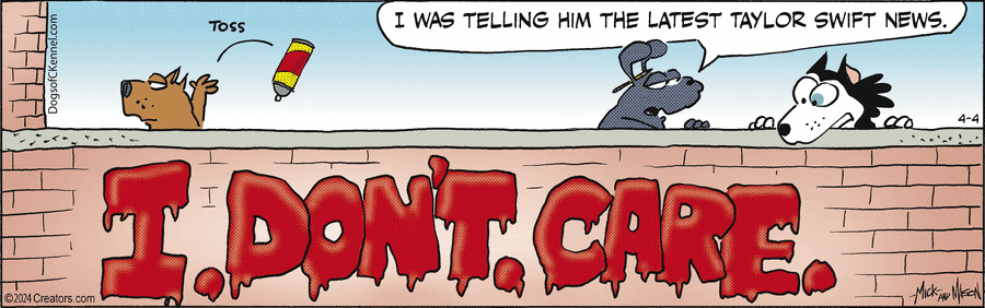 I’ll betcha this Dogs of C Kennel (Creators) was drawn during football season. Things seem to have calmed down. But this ties into recent conversations about how our parents felt about the Beatles, it having just been the 60th anniversary of their first appearance on Ed Sullivan.