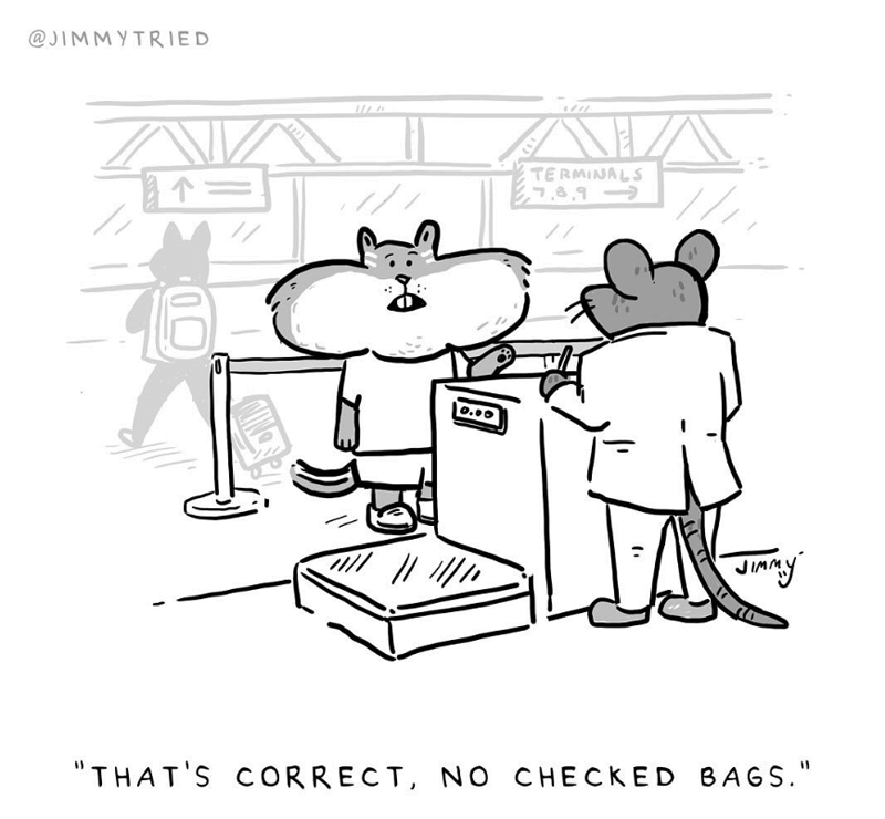 You might think this was some weird coincidence, but if you compare their tails, you’ll note that Parisi’s passenger is a hamster, while Craig has drawn a chipmunk. Also, Parisi’s hamster is being checked in by another hamster while Craig’s is being checked in by Art Spiegelman.