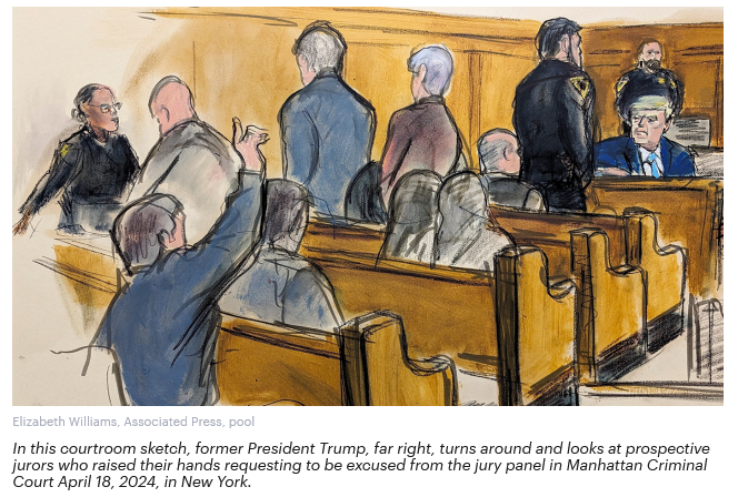 Before the trial began ABC News interviewed the three courtroom sketch artists assigned to the New York “hush money” trial of former president Donald Trump – Elizabeth Williams, Jane Rosenberg, and Christine Cornell.