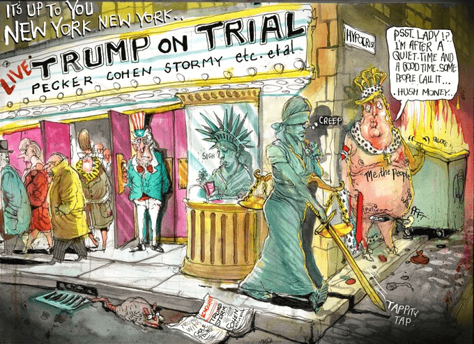 It’s hardly the GOP’s only problem, and I doubt NYC’s tourism board will be asking for reprints of this David Rowe depiction. We all know Rudy Guiliani cleaned up Times Square!