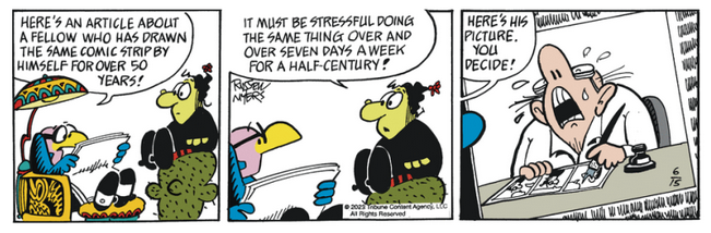 while Myers gets the longest time soloing a daily comic strip.