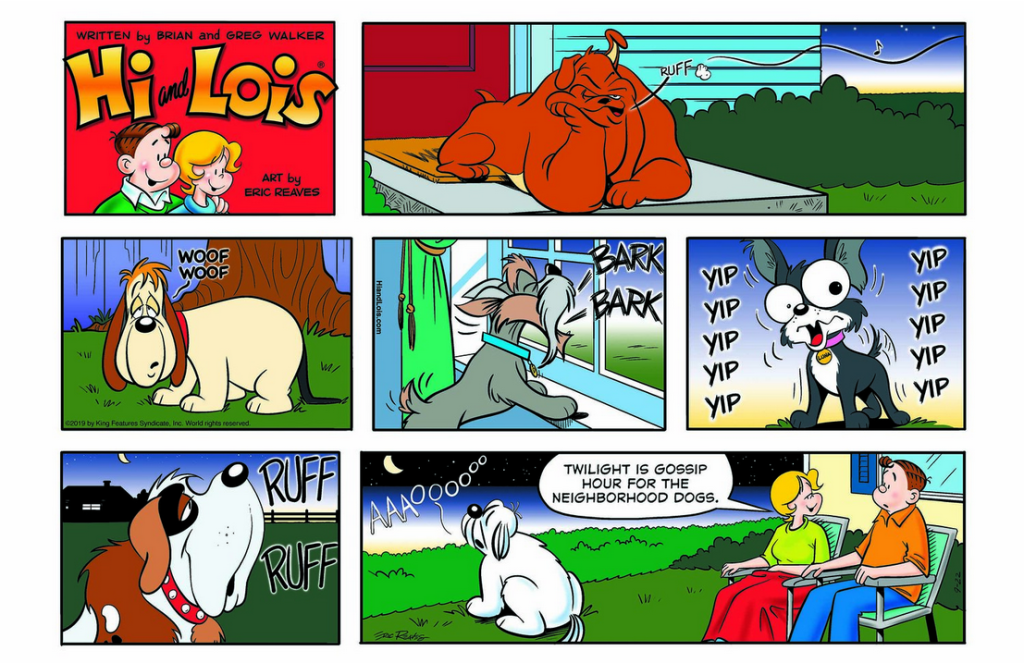 Eric Reaves continues to impress with his ability to mimic the style of other cartoonists in Friday’s Hi and Lois. (Though I have noticed some deviations from Dik Browne‘s art lately.)