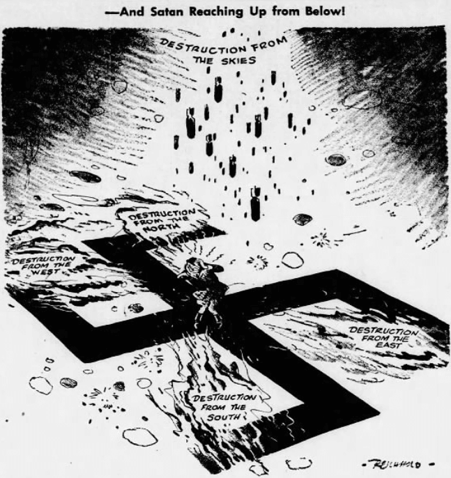 As Ralph Reichhold illustrated in the Pittsburgh Press, Hitler had plenty to fret over by June 6. The Normandy Invasions were a major development in the war, but it shouldn’t be forgotten that the Russians were making things hot on the Eastern Front as well.