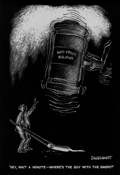 Engelhart was a freelance cartoonist and artist [in New York] from 1957 to 1960 and then worked briefly [1960-1962] Newspaper Enterprise Association in Cleveland. From there he returned to St. Louis, the city of his birth.