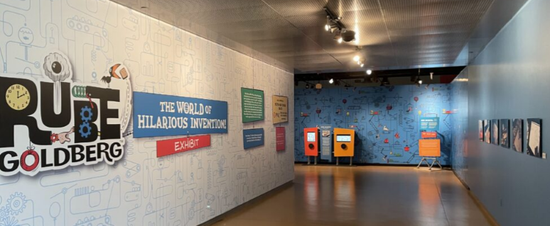 Rube Goldberg: The World of Hilarious Invention! Exhibit is on display at the Cade Museum for Creativity and Invention now through December 2024. Created by the Children’s Museum of Pittsburgh in partnership with the Heirs of Rube Goldberg,the exhibition showcases Pulitzer Prize winning humorist and inventor Rube Goldberg’s iconic contraptions and celebrates his humorous storytelling and inventive cartoons.
