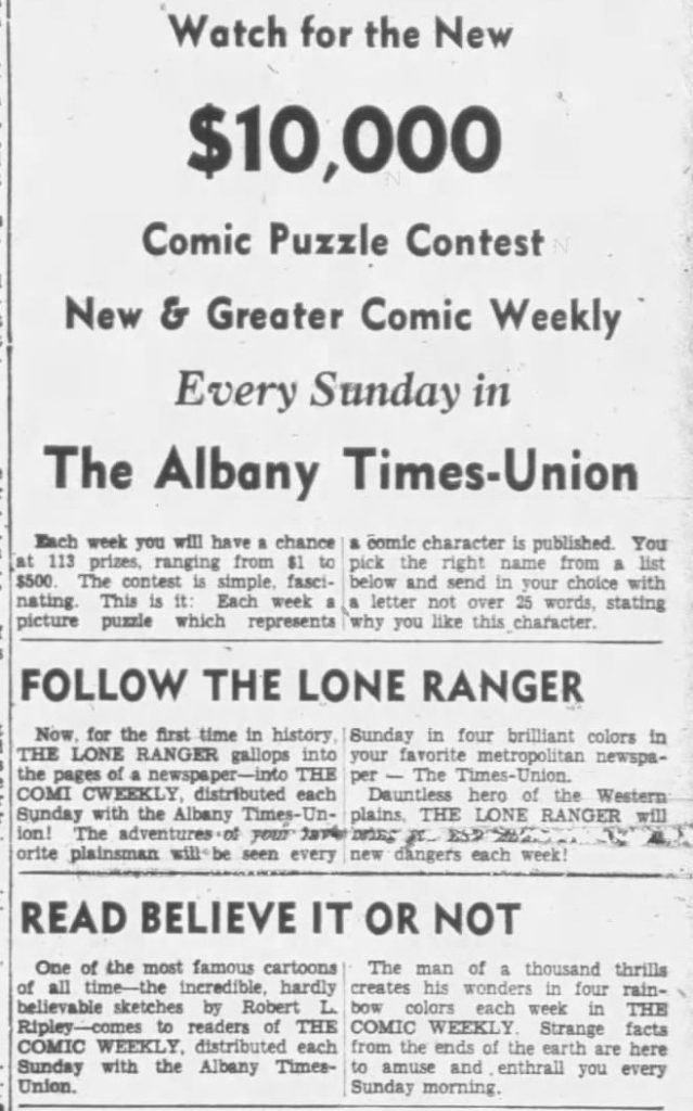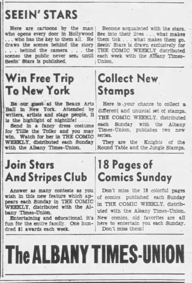 So we’ll celebrate with a 1938 Times-Union promo from 1938: