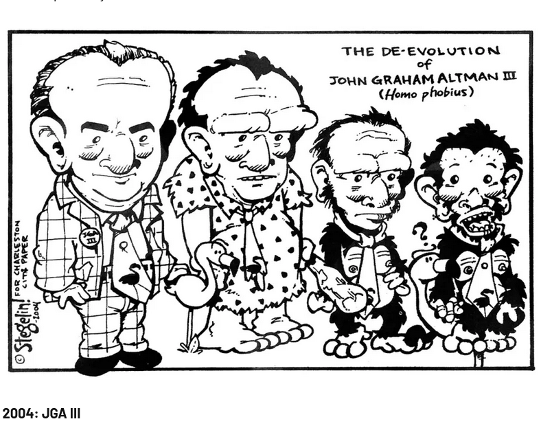 Along with Andy Brack’s profile and interview with Steve Stegelin the August 9, 2024 issue of The Charleston City Paper features a gallery of Steve’s personal favorite cartoons since 2004 – including his first cartoon for the paper (above) and his latest regular weekly cartoon (also above). The gallery is a nice showing of how Steve’s art style has evolved over two decades. The City Paper’s archives of Stegelin cartoons goes back to 2005.