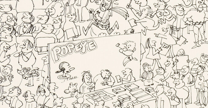 Harold and the Purple Crayon, 1960s Popeye cartoons, 1972 Sergio Aragonés poster, Little Orphan Annie and Harold Gray, 2024 San Diego Comic-Con book.