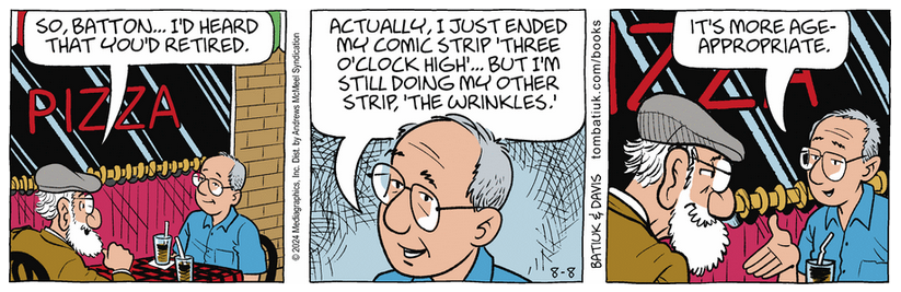 Earlier this week Tom Batiuk had his cartoon doppelganger show up in Crankshaft. Today Batton remembers the Good Old Days when he “coulda been somebody.”