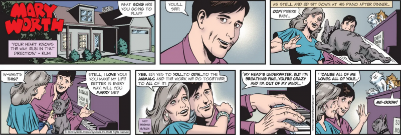 For whatever reason Comics Kingdom reduces a Sunday page a quarter size instead of running the half page version. As mentioned above today it was Mary Worth. Had to go elsewhere for the half page.