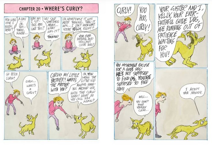 I stole the dog from Walt Kelly [the creator of Pogo]. In his version, “man’s best friend” is leading people down the wrong path, and was always speechifying. And Kelly, who never had a nice word to say to me in my entire career, I decided to pay back by using his dog in my book. The dog is named Kelly.