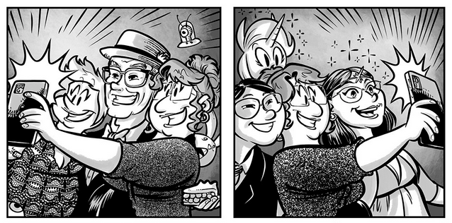 The cartoonist hosts were joined on stage by Maria Scrivan, Hector Cantu, Dana Simpson, Danesh Mohiuddin, Hilary B. Price, and Tauhid Bondia.