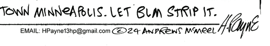 Henry has complied and as of September 23, 2024 a new email address is appearing in his cartoons. He also seems to have eased up on his output. His usual four or five ‘toons a week are (temporarily?) down to two of late.