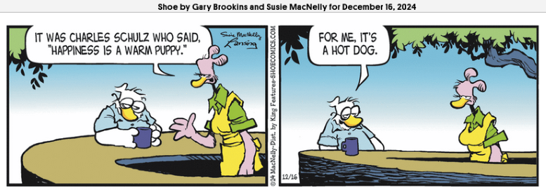 I guess it is the season for Schulz as FurBabies and Shoe both referenced Peanuts on Monday.