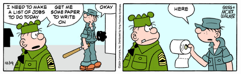 The joke isn’t out of place on the funny pages, but it did strike me as a little coarse for a Beetle Bailey.