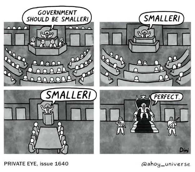 This cartoon from Private Eye demonstrates one way of preserving order, and between this and Otzen’s offering, we at least have the satisfaction of knowing that people from outside the US recognize a reasonable level of helplessness and chaos happening here.
