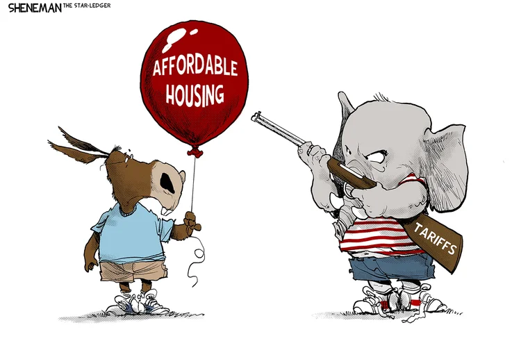 Both cartoonists envision regret, though Sheneman depicts only Democrats as finding that tariffs on Canadian lumber and other building supplies will undermine their drive for affordable housing. I certainly expect conservatives to discover the same unhappy result, and, in fact, I’m counting on it.
