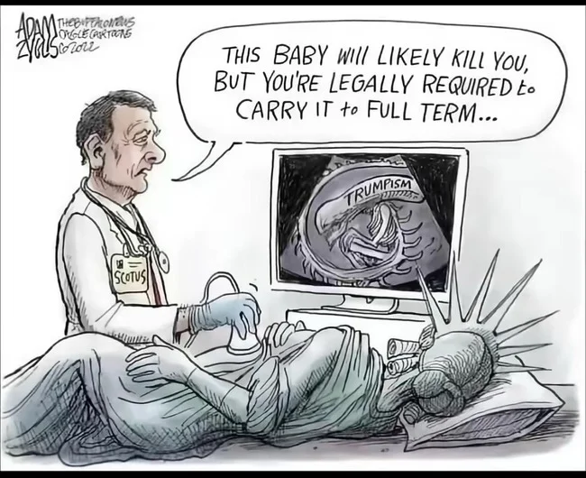 It’s frightening to see, as Zyglis notes, our system of checks and balances tottering, and the Supreme Court potentially reduced to issuing warnings rather than commands.