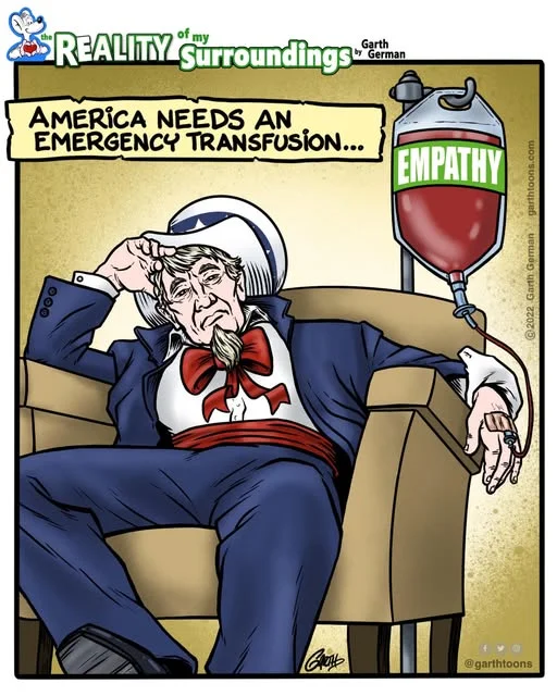 But, again, our response should be to make them whole rather than to shower them with blame. German suggests that Uncle Sam could use a transfusion of empathy, and it’s true that the folks in power seem utterly unable to put themselves in the place of the average person. I’m not sure you can climb into the top one-percent if you possess empathy for others.